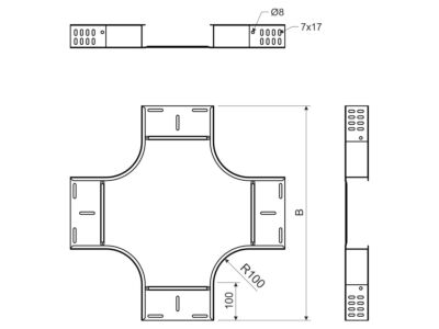 Kříž pro vytvoření křížení dvou kabelových tras o rozměru 110x300 mm, povrchová úprava sendzimir. Spojení s kabelovým žlabem je prováděno pomocí šroubů bez nutnosti použití speciálních spojek