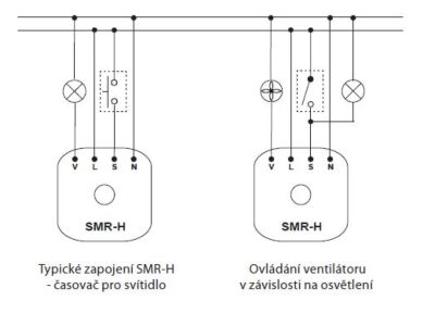 Multifunkční relé určené pro montáž do instalační krabice, pod tlačítko nebo vypínač do stávající elektroinstalace (SMR-K, SMR-T nepotřebuje ke své funkci nulový vodič).