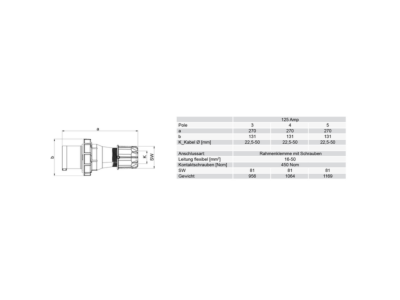 vidlice 4-pólová 125A / 500V, 7h, IP67