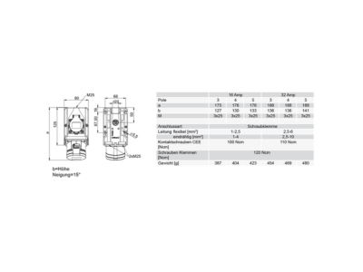 zásuvka průmyslová 5-pólová, 32A / 380V ,6h, + 16A / 230V CZ, IP44, COMBO, pojistka