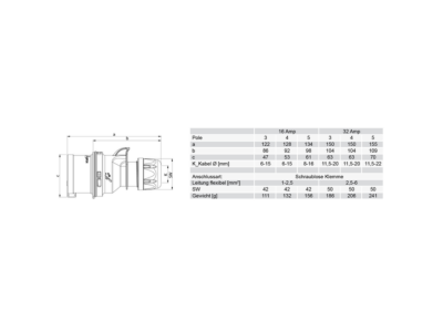 vidlice 5-pólová, 16A / 400V, 6h, IP44, bezšroubová TURBO TWIST