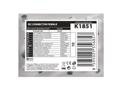 IEC konektor úhlová zásuvka je určen k napojení na koaxiální kabel a má bílou barvu. Prodává se po 10 ks a je plastový.