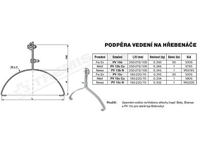 TREMIS Podpěra PV 15b vedení na hřebenáče, materiál:měď