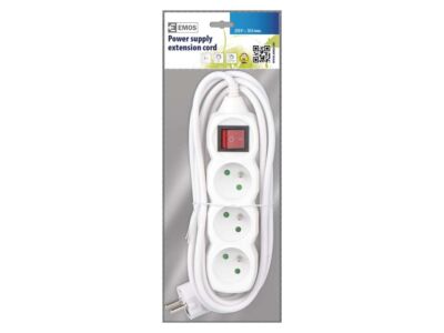EMOS Přívod prodlužovací 3m 3zásuvka 250V/10A s vypínačem IP20 bílá