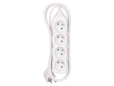 Bílý prodlužovací přívod, 4 zásuvka s délkou 1,5 m a průřezem vodiče 1 mm2. Vhodný pro maximální zátěž 10 A max. Prodlužovací přívod 1,5 m na 230 V~ slouží k prodloužení elektrické energie tam, kam pevná zásuvka nedosáhne.