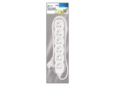 Bílý prodlužovací přívod, 6 zásuvka s délkou 2 m a průřezem vodiče 1 mm2. Vhodný pro maximální zátěž 10 A max. Prodlužovací přívod 2 m na 230 V~ slouží k prodloužení elektrické energie tam, kam pevná zásuvka nedosáhne.