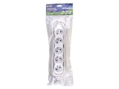 Bílý prodlužovací přívod, 5 zásuvka s délkou 3 m a průřezem vodiče 1 mm2. Vhodný pro maximální zátěž 10 A max. Prodlužovací přívod 3 m na 230 V~ slouží k prodloužení elektrické energie tam, kam pevná zásuvka nedosáhne.