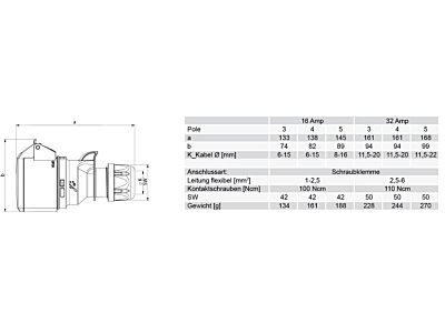 Spojka 3-pólová, 32A / 220V, krytí IP 44