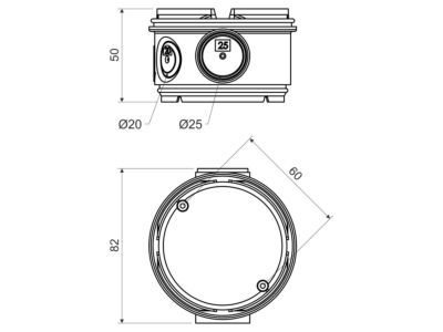 KBT-2 - TĚLO KRABICE DO BETONU, konfigurace AB, barva ORANŽOVÁ, tělo krabice je opatřeno osazením pro spojení s víkem KBV a spodkem KBS, na obvodu těla krabice jsou naznačené otvory pro vyvrtání vstupů pro trubky dimenze EN 25 a 32, vstupy lze snadno vytvořit v požadovaných místech pomocí vrtáku a příslušného vrtacího břitu, montáž do těla krabice je doporučována před sestavením kompletu.
