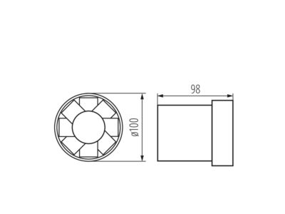 VENTILÁTOR do trubky o průměru 100 mm. Objemový průtok vzduchu je 100 m3/h (zajištěno při délce potrubí 1 m).