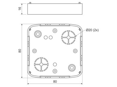 LK 80X16 T - KRABICE LIŠTOVÁ, konfigurace HB, barva SUPERBÍLÁ/RAL9003, balení - 10/160 ks - určené pro přístroje modelové řady Tango. Pro instalaci na materiály třídy reakce na oheň E nebo F použijte izolační podložku.