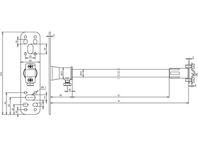 Distanční držák vedení pro dodržení dostatečné vzdálenosti podle ČSN EN 62305-3. Distanční tyč z umělé hmoty vyztužené skleněnými vlákny GFK (glasfaserverstärkte Kunststoff), D 16 mm, odolnost proti UV záření, barva světle šedá, koeficient materiálu km= 0,7. Provedení s držákem vedení (pevné uchycení) a upevňovací destičkou.