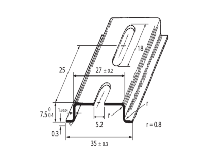 DIN-lišta 35x7,5 - děrovaná, šířka otvoru 5,2mm, pasivovaná
