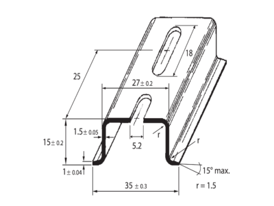 Svorkovnicová lišta, se slotem. Příslušenství, 35 x 15 x Šířka drážek: 5.20 mm, Délka drážek: 25.00 mm, Ocel, galvanizované, pochromované. Svorkové lišty pro instalaci aktivních a pasivních komponentů. Délka 2m.
