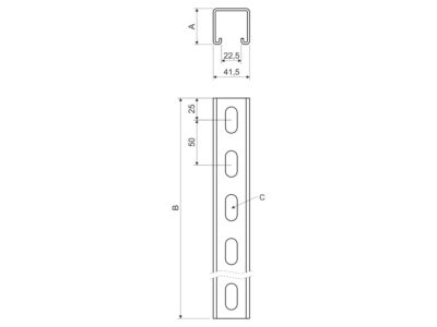 Montážní profil pro vytvoření pomocných nosných konstrukcí nebo pro zavěšení kabelových tras pomocí závitových tyčí, rozměr 41x21 tloušťky 2,5 mm, povrchová úprava žárový zinek