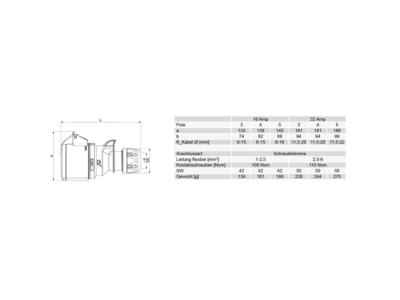 spojka 5-pólová, 16A / 400V, 6h, IP44