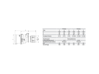 - Napětí podle ČSN EN 60309-2 230 V (50 Hz 60) modrá
