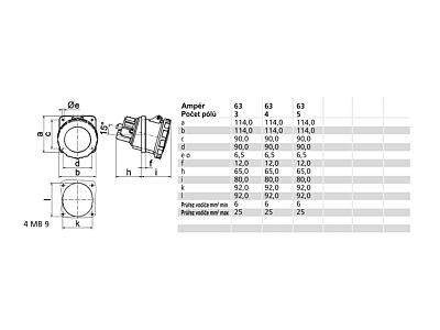 rozměr příruby: svisle 114 mm, vodorovně 114 mm