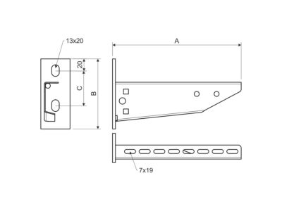 Držák pro montáž kabelových tras šíře 1000 mm nebo více kabelových tras do celkové šíře 1000 mm na stěny, vyšší mechanická únosnost, povrchová úprava žárový zinek