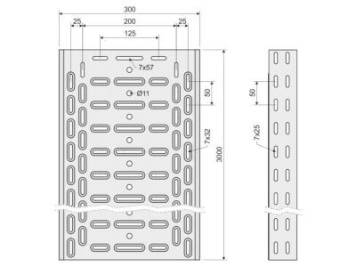 Kabelový žlab KZ 60x300 z plechu tloušťky 1,5 mm pro spojení pomocí spojky, v povrchové úpravě žárový zinek, děrovaný, opatřený embosy pro zvýšení pevnosti a tuhosti, certifikovaný pro systémy se zachováním funkčnosti při požáru