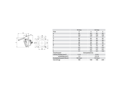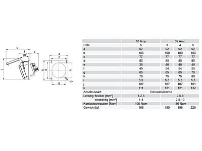 zásuvka vestavná 5-pólová, 32A / 400V, 6h, IP44, šikmá, příruba 92x100mm