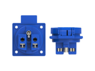 zásuvka vestavná 3-pólová, 16A / 250V CZ, IP54, příruba 50x50mm, modrá, zadní přívod