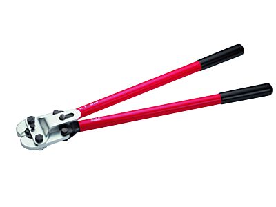 Krimpovací kleště pro trubková kabelová oka a konektory "standardní provedení", vrubové krimpování s vestavěnými otočnými profilovými kotouči, ovládané pákou, pro trubková kabelová oka a konektory, vrubový krimpovací průřez 50-120 mm², délka 970 mm.