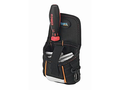 Malá univerzální taška na ná?adí a pom?cky. Se 3 p?ihrádkami, karabinou na klí?e, metr atd. Zapínání na suchý zip, univerzální kovová p?íchytka pro p?ipevn?ní k opask?m a brašnám všeho druhu, hmotnost pouze 120 g. Rozm?ry 105x60x170 mm.