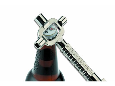 Nový stavební klíč, masivní kovový klíč z kujné litiny, s širokým spektrem použití v budovách, zejména v novostavbách. Vlastnosti: Vnitřní čtyřhran 6, 7 a 8 mm, vnější čtyřhran 6-10 mm pro dveře a okna bez kování. Šestihranný klíč (imbusový klíč) 3 mm pro šrouby na pákách dveřních klik, čep pro zavírání a otevírání držáků profilových cylindrických vložek (Ø 17 mm). Hloubkoměr pro vestavěné zámky 22-75 mm, otvírák na lahve. Celková délka 195 mm.