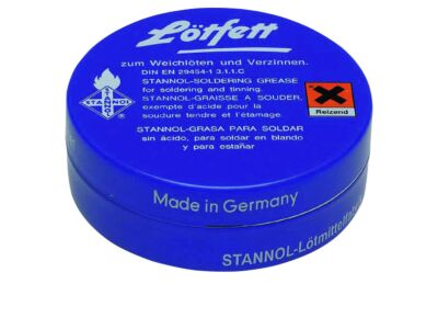 Pájecí tuk, 100 g, podle DIN EN 29454-1 3.1.1.C, pro měkké pájení pocínovaného plechu a olovnatých plechů, pro pocínování mědi a mosazi, není vhodný pro elektrotechniku a elektroniku (obsahuje chlorid zinečnatý, korozivní).