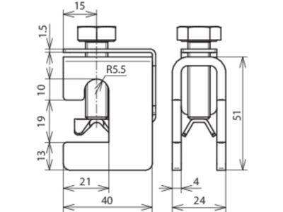 Připojovací svorka s přítlačným šroubem podle ČSN EN 62561-1, pro připojení ocelových konstrukcí a plechů pomocí jednoho šroubu. Provedení malé, s podélným nebo příčným připojením.