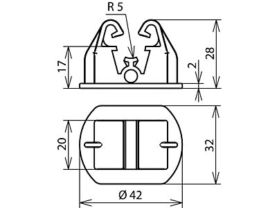 Adaptér pro kruhové vodiče k nacvaknutí na střešní držák vedení typ FB a KF, pro kruhové vodiče D 10 mm. Provedení s volným uchycením vedení.