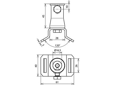 Nástavec s upevňovací zdířkou, pro kombinaci s upínacím páskem na potrubí. K upevnění izolační tyče DEHNiso (D 16 mm) na potrubí nebo pro kombinaci s držákem vedení s distanční tyčí (odstup 200 mm) při uložení vodiče HVI ve výbušném prostředí.