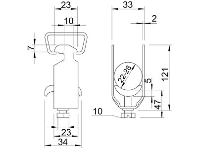Třmenová příchytka s kovovou přítlačnou opěrkou, 3 násobná 22-28 mm