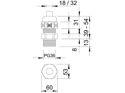 - Rozměr závitu metricky / PG 36