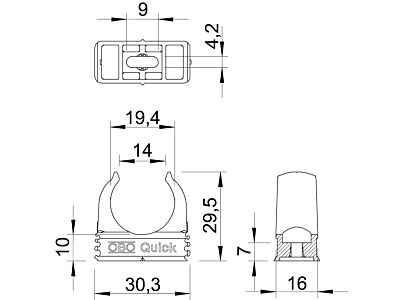 Příchytka na omítku odolná proti šíření plamene k upevnění metrických pancéřových trubek, lehkých a těžkých izolačních trubek a elektroinstalační trubky Quick-Pipe. Univerzální možnosti upevnění na stěnu a strop v interiéru a v chráněném venkovním prostoru. S podélným prolisem pro boční vyrovnání při montáži pomocí šroubu do dřeva nebo natloukací hmoždinky. Montáž trubek bez použití nástrojů. Řaditelné vedle sebe také s příchytkami OBO Multi-Quick nebo starQuick. Velikost M16 až M32 lze našroubovat na závit M6. Vzdálenost upevnění 50 až 60 cm, max. vytahovací hodnoty F při teplotě 20 °C viz tabulku.
