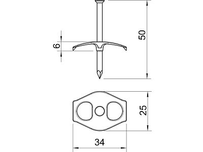S předem namontovaným zinkovaným ocelovým hřebíkem o průměru 3 mm až 3,5 mm, k upevňování vedení do spár ve zdi a na zdivo, pro 1 nebo 2 vedení NYM 3 × 1,5/2,5 mm² popřípadě 1 nebo 2 vedení NYM 5 × 1,5/2,5 mm².