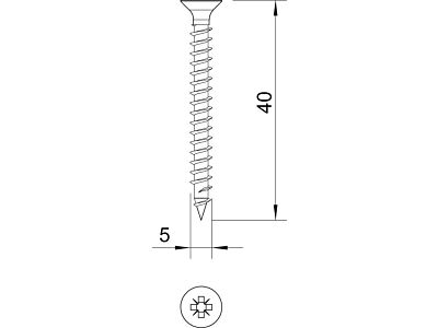 Kalená ocel, galvanicky zinkovaná a opatřená nátěrem Hostaflon. Zápustná hlava s křížovou drážkou (Pozidrive vel. 2 kromě Ø 6 mm Pozidrive vel. 3).
