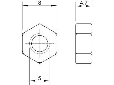 Šestihranná matice podle DIN 934 s metrickým závitem. Třída pevnosti 8.8.