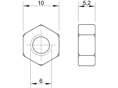 Šestihranná matice podle DIN 934 s metrickým závitem. Třída pevnosti 8.8.