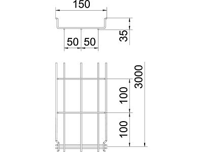 Mřížový žlab s vytvarovanou integrovanou spojkou s výškou bočnice 35 mm.