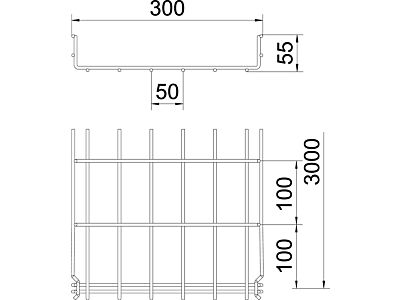 Mřížový žlab s vytvarovanou integrovanou spojkou s výškou bočnice 55 mm.