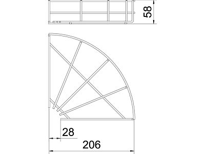 Oblouk 90°, horizontální, pro mřížové žlaby s výškou bočnice 55 mm.