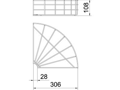 Oblouk 90°, horizontální, pro mřížové žlaby s výškou bočnice 105 mm.