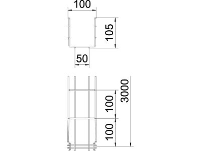Mřížový žlab s tvarovanou integrovanou spojkou s výškou bočnice 105 mm.