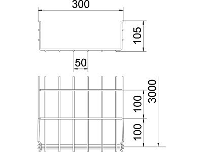 Mřížový žlab s tvarovanou integrovanou spojkou s výškou bočnice 105 mm.