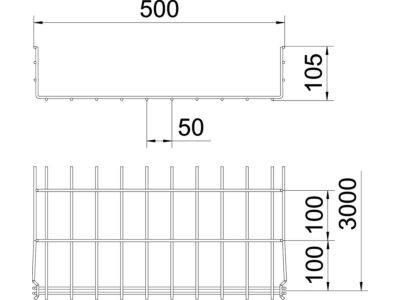 Mřížový žlab s tvarovanou integrovanou spojkou s výškou bočnice 105 mm.