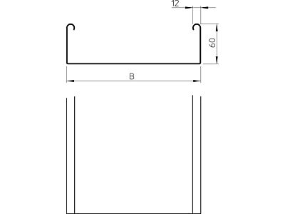 SKSU 60 = těžký systém kabelových žlabů, neděrovaných, výška bočnice 60 mm.