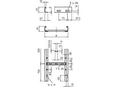 Kabelový žebřík těžký, děrovaný, příčka NS 45x400x6000, St, FT