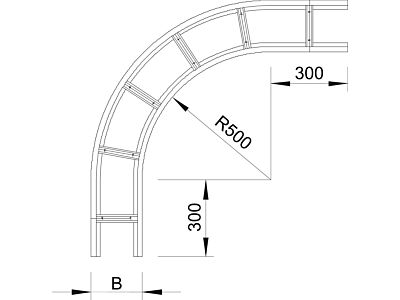 Oblouk 90°, horizontální, pro všechny kabelové žebříky pro velká rozpětí s výškou bočnice 160 mm.